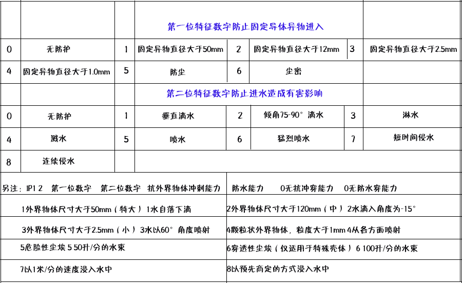 外殼防護(hù)等級(jí)(IP)代碼