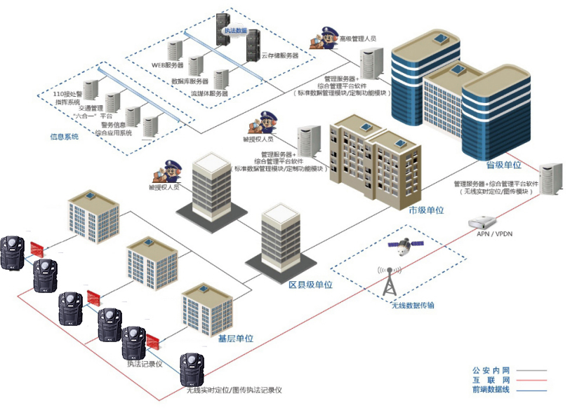 建設(shè)4G高清執(zhí)法記錄儀綜合管理平臺,實(shí)現(xiàn)民警在執(zhí)勤時的全球定位、4G無線圖傳功能;并對視頻和音頻進(jìn)行現(xiàn)場錄制,將錄制資料通過上傳到系統(tǒng)資料庫,可實(shí)現(xiàn)存儲、編目、檢索、管理、考核、研判等功能。