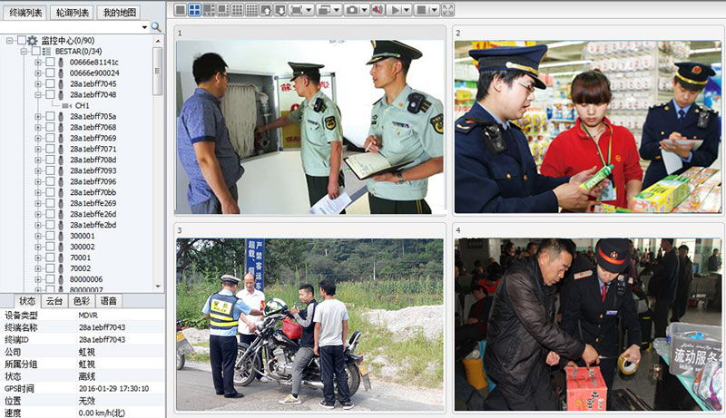 監(jiān)控客戶端軟件可同時監(jiān)視多路前端單兵終端圖像功能??梢栽O(shè)置4分屏、6分屏、9分屏和16分屏