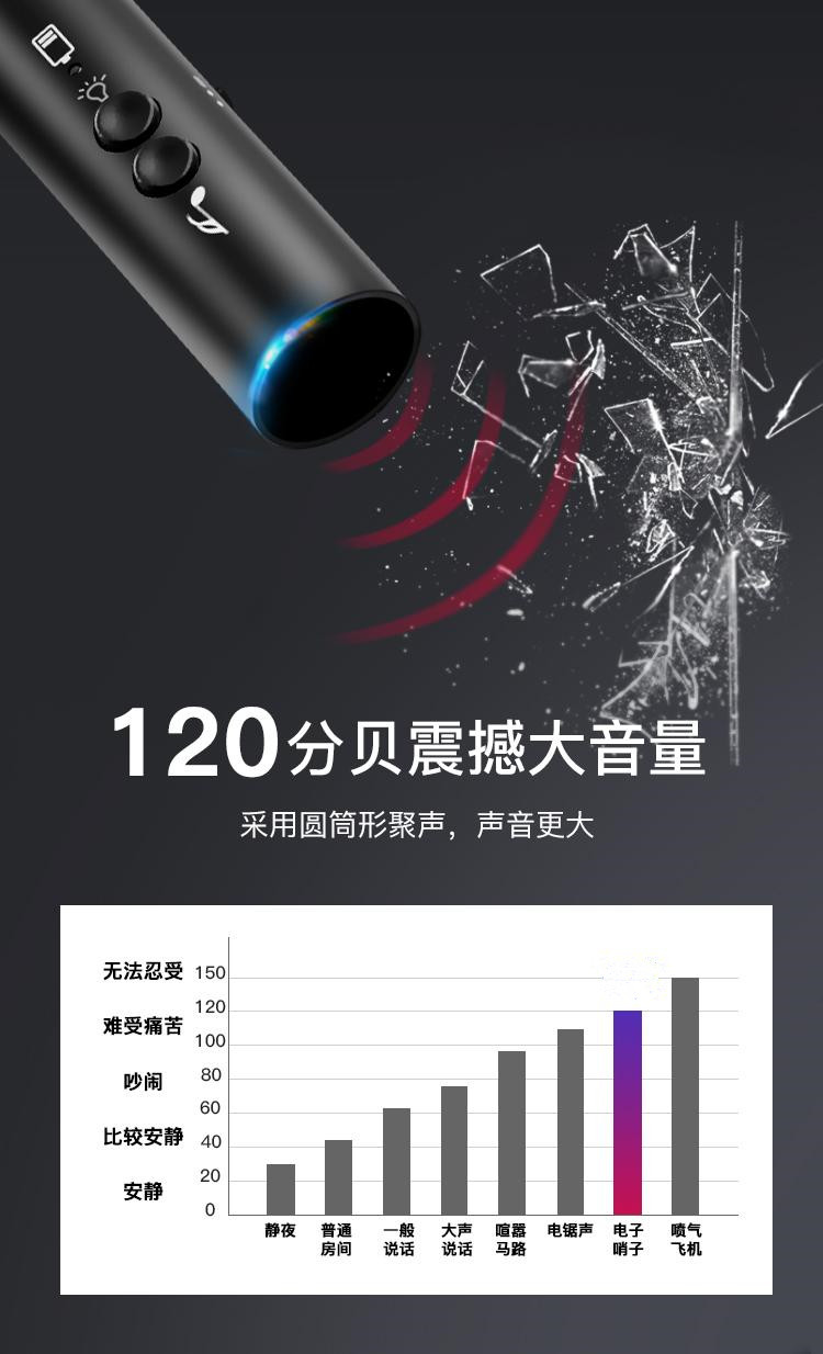 聲音分貝:大于120DB(禁止在耳邊長(zhǎng)時(shí)間鳴響)