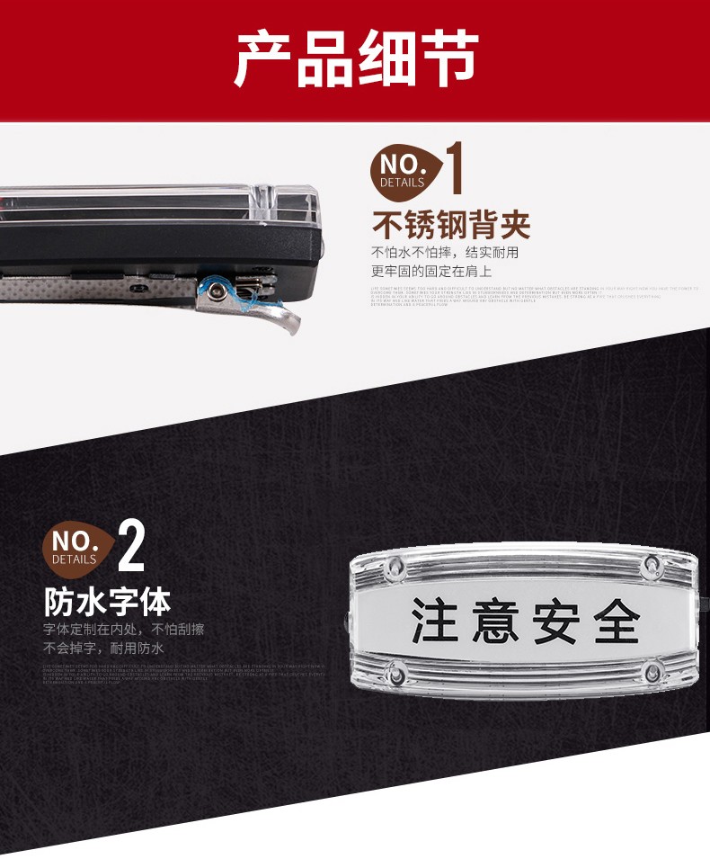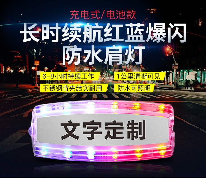 安全防護(hù)肩燈主要用于公路交通工作人員,道路環(huán)衛(wèi)工人以及行人夜間道路安全警示,通過多模式,高警示,自主LED發(fā)光提醒過往司機(jī)亮燈處有人員存在,小心駕駛,從而達(dá)到保護(hù)佩戴者的功能。曾經(jīng)有新聞報道,小小的肩燈給一個在火災(zāi)中的生命帶來生存的希望,如果沒有這個肩燈,那消防救助員就不容易發(fā)現(xiàn)他。相信小小的肩燈會實現(xiàn)越來越多,越來越大的功能,可以說肩燈在某些環(huán)境是保命的法寶。公司所生產(chǎn)的充電肩燈和電池肩燈都是通過LED自主多模式發(fā)光,實現(xiàn)爆閃,流水閃,頻閃等高警示閃光,起到非常好的警示效果。